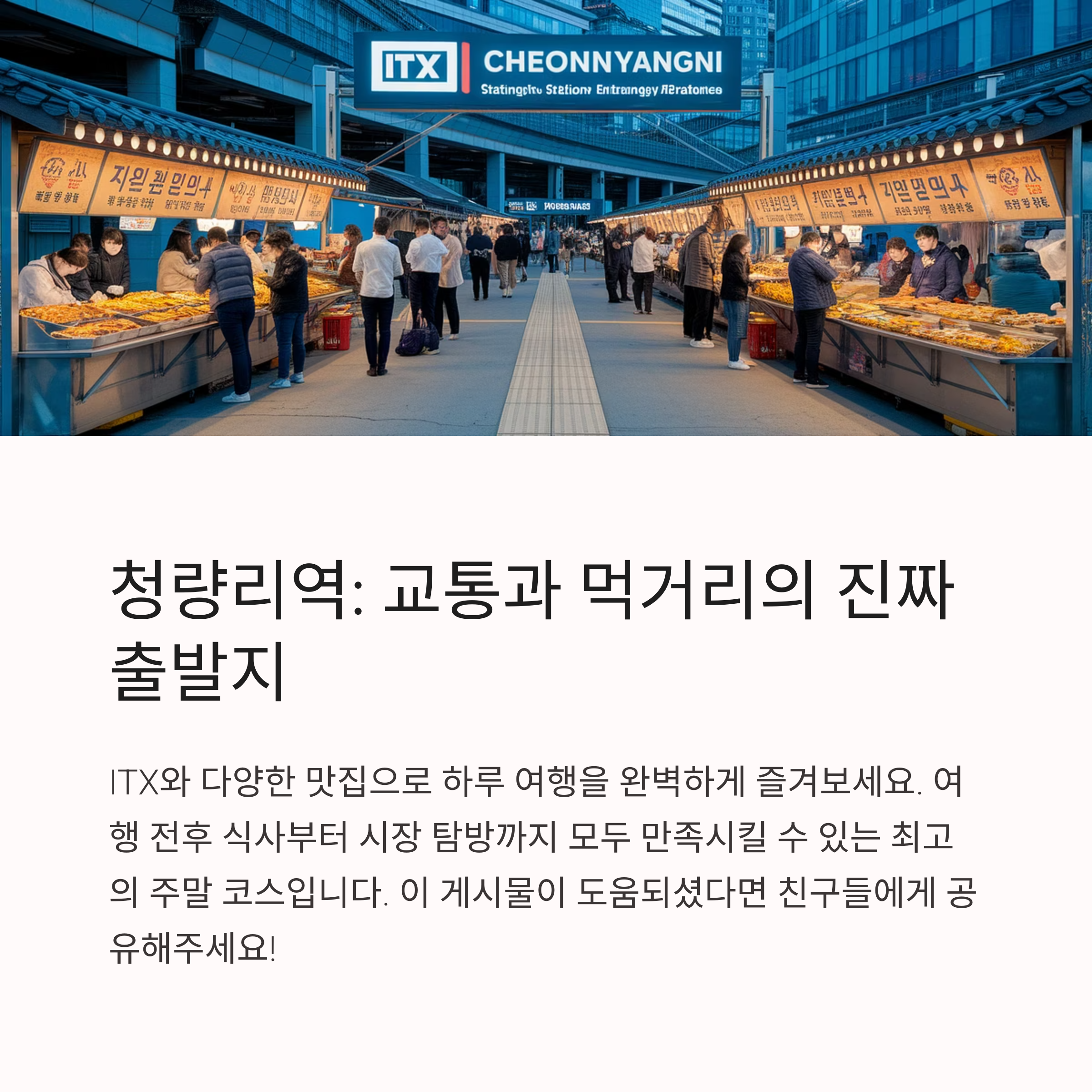 오늘은 ITX 청춘열차 시간표와 함께 청량리역 근처의 먹거리 명소들까지 소개해 드리겠습니다. 여러분의 하루가 더욱 즐겁고 풍성하게 시작되길 바랍니다.
