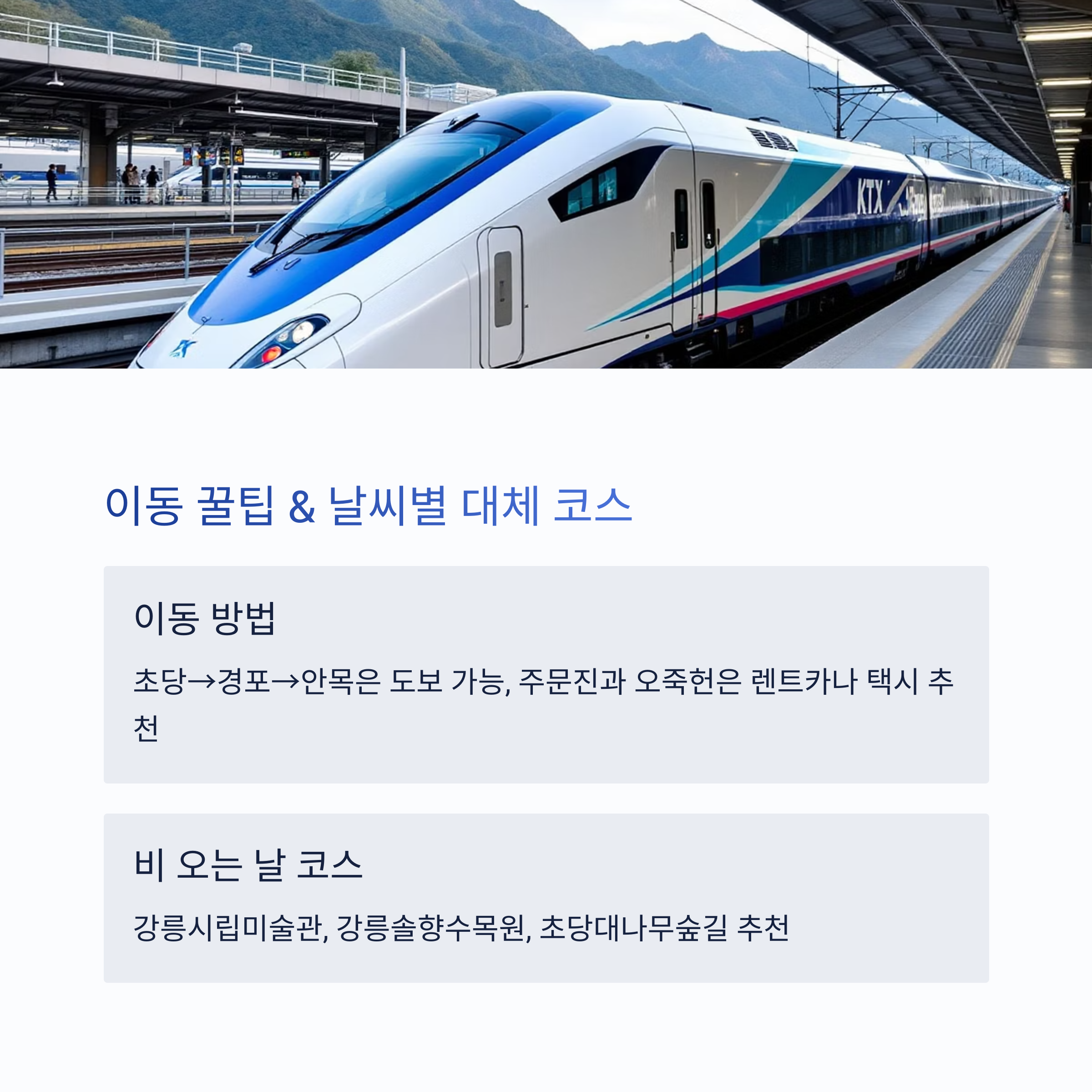 특히 초당→경포→안목은 도보 이동이 가능하며,