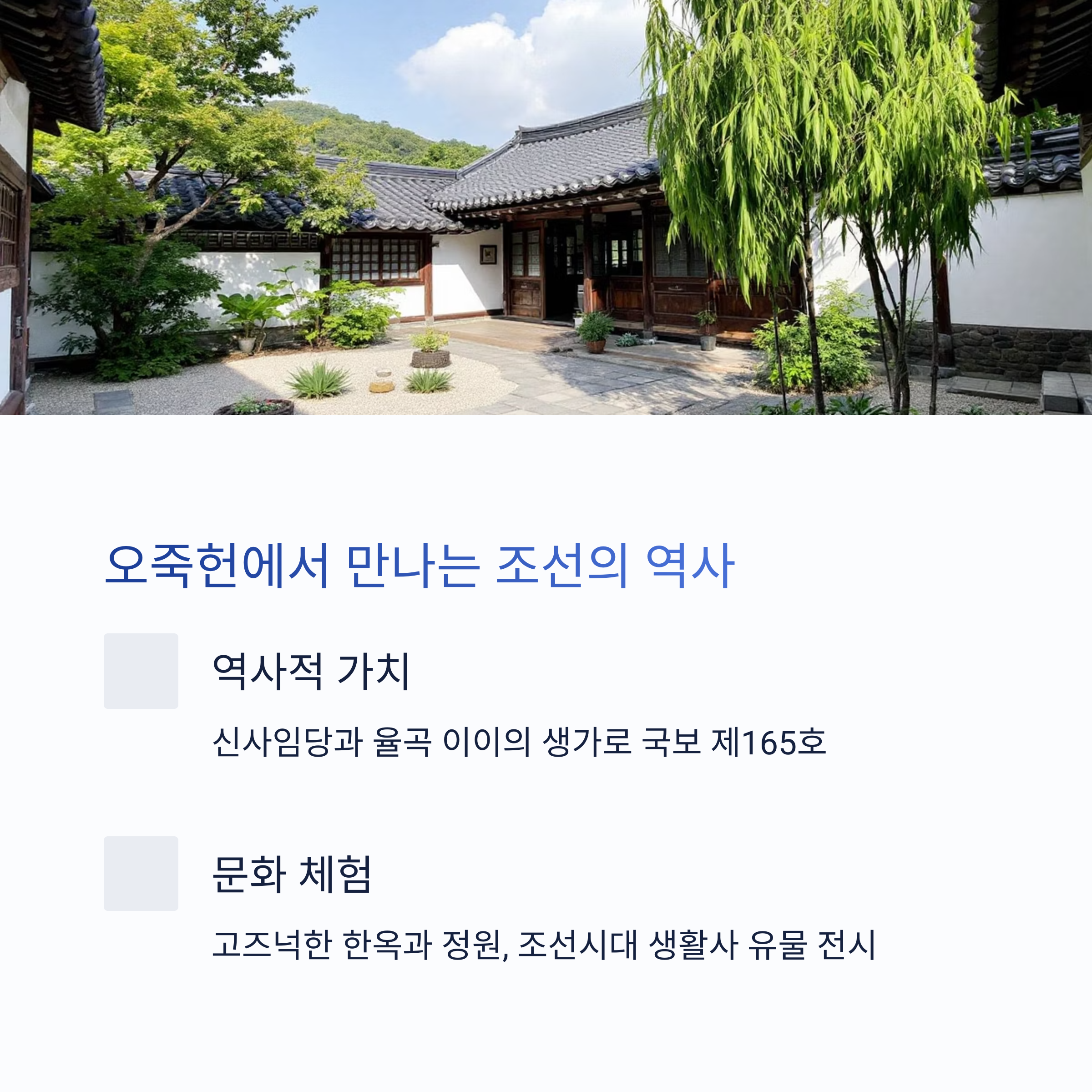 | 오후 3시 | 오죽헌 산책 및 문화유산 관람 |