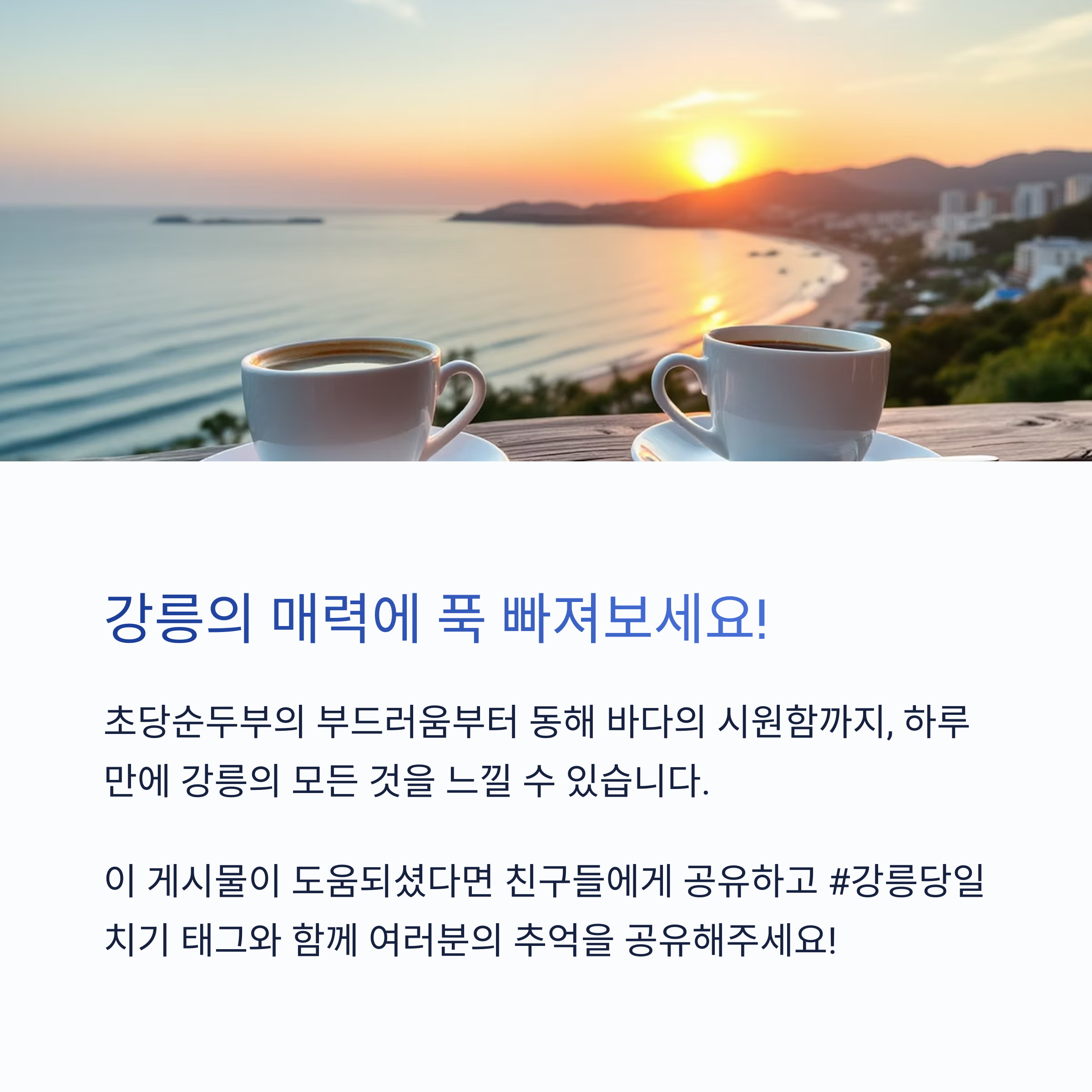 당일치기로 효율적으로 강릉을 둘러볼 수 있는 추천 동선은 다음과 같습니다.