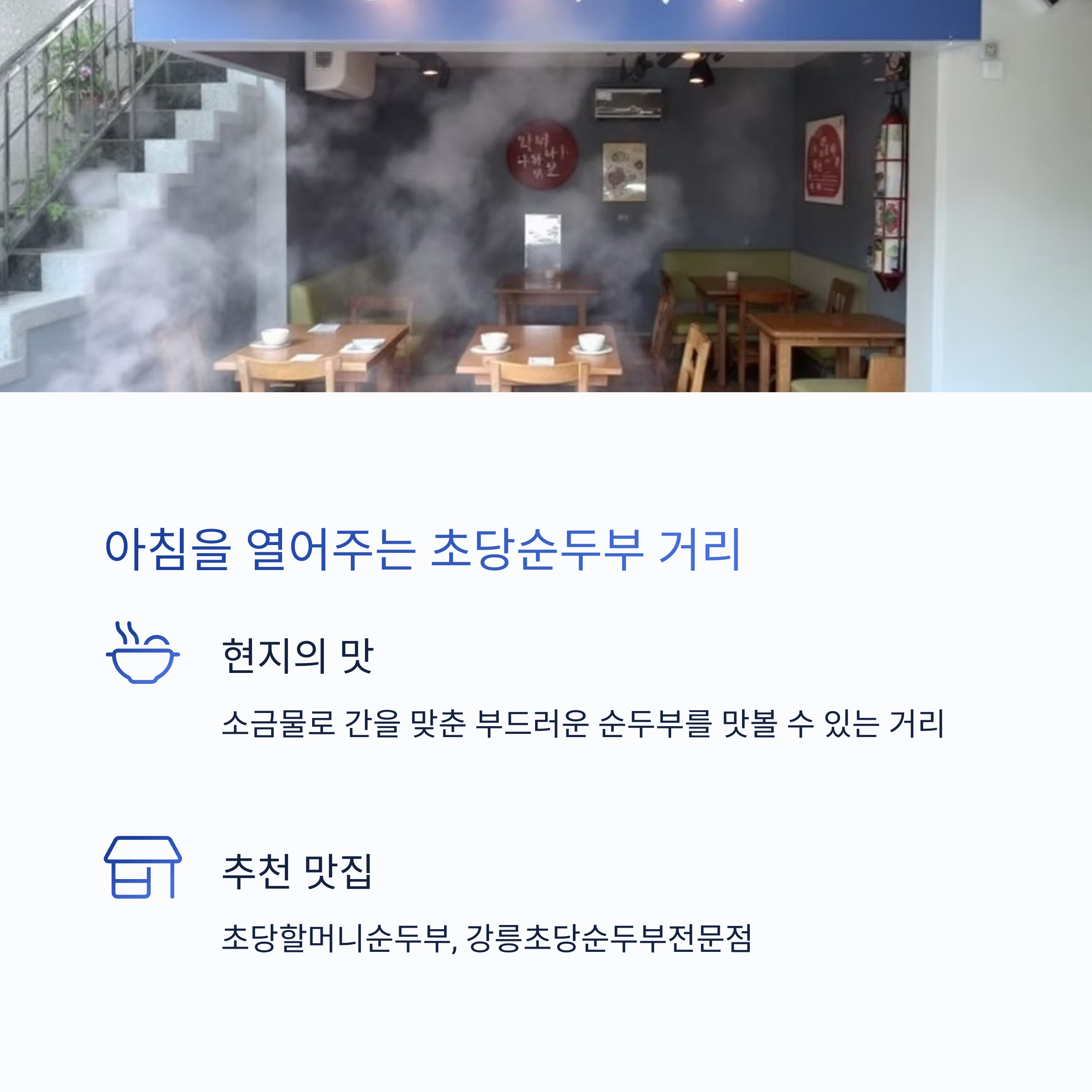 | 오전 9시 | 초당순두부 거리 아침 식사 |