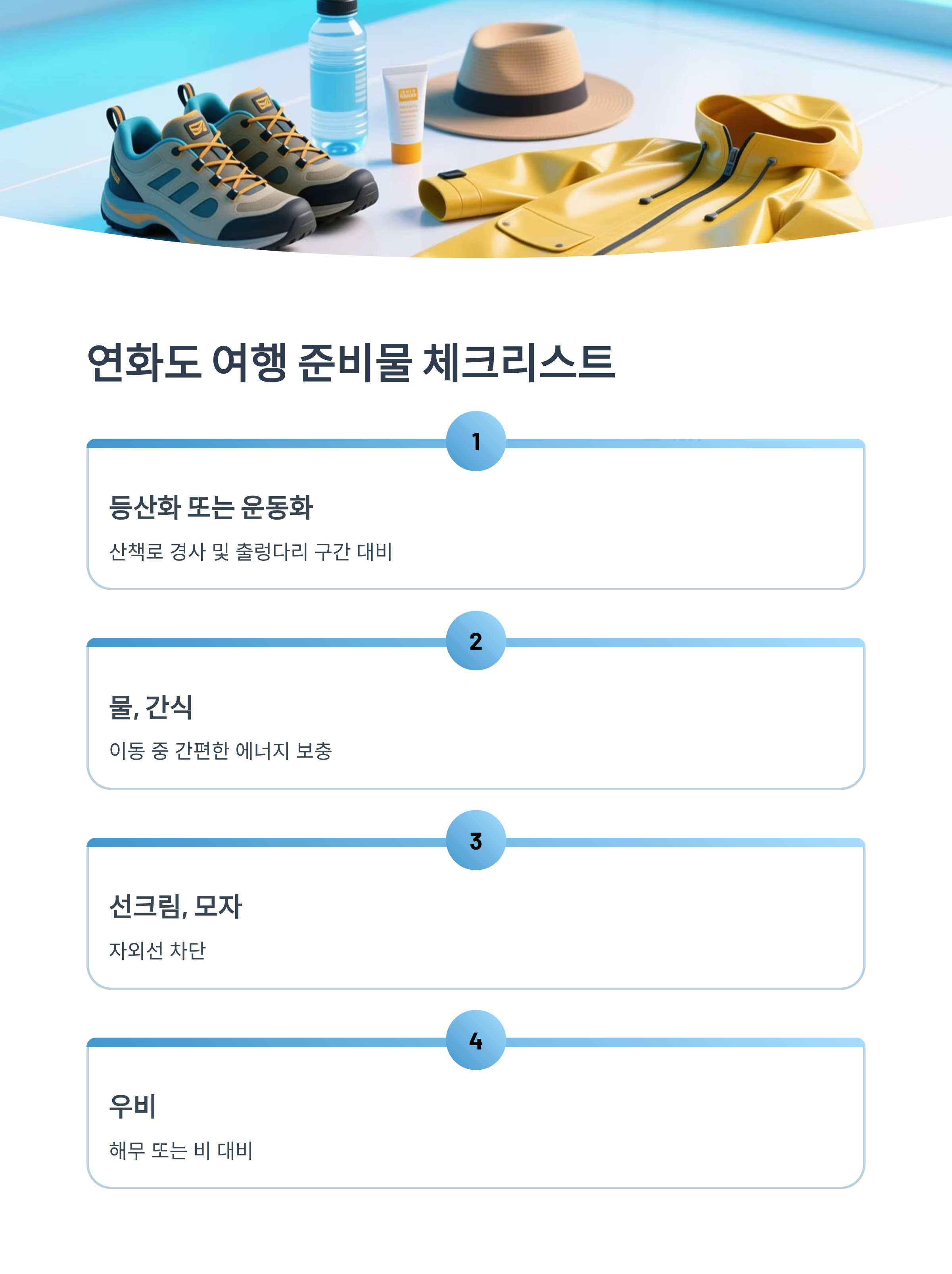 햇빛이 강하니 모자와 선크림, 비가 오면 미끄러운 구간도 있으니 우비까지 챙기면 더 좋아요.