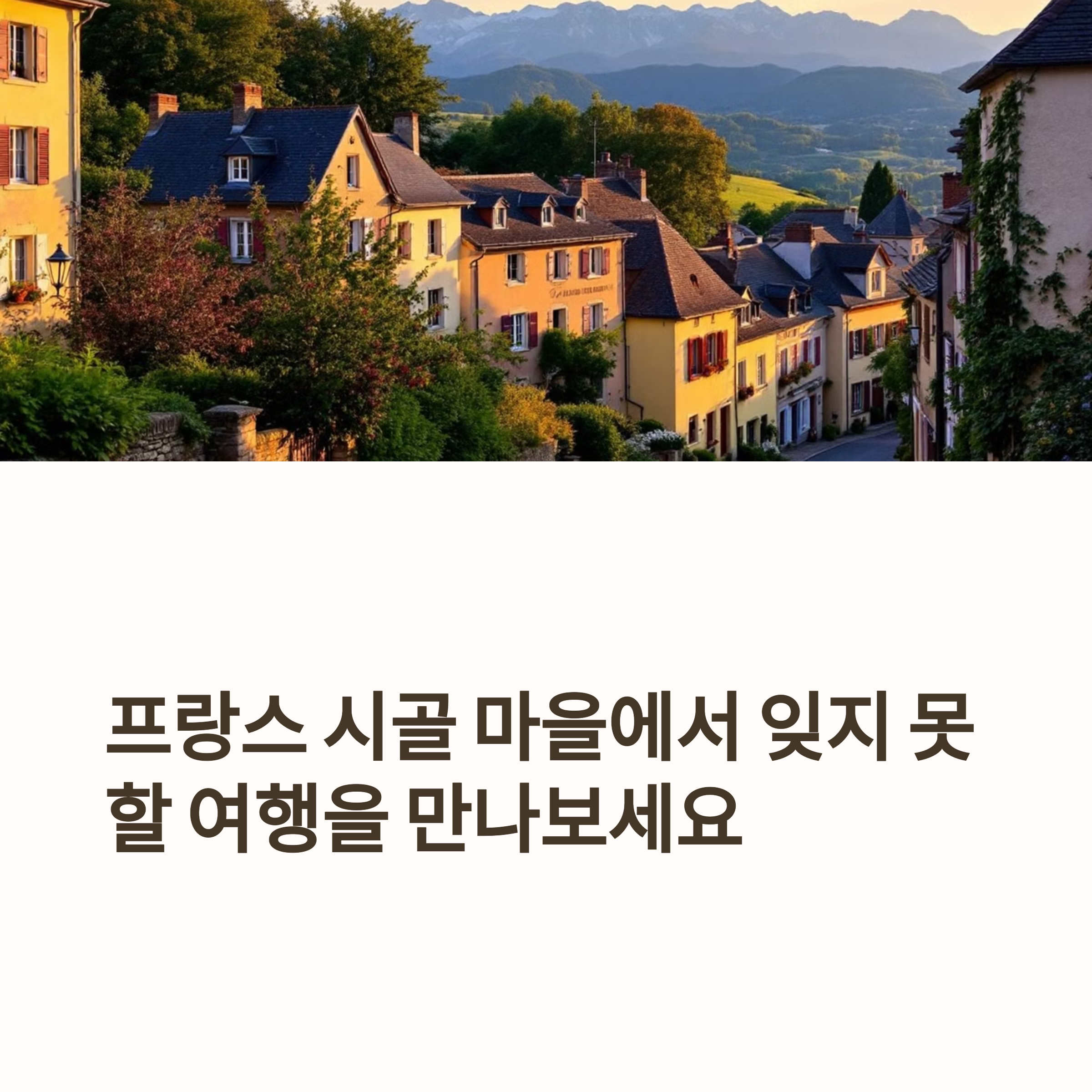프랑스의 시골 마을들은 도시에서 경험할 수 없는 특별한 감성을 제공합니다. 여유로운 골목길 산책, 와이너리 투어, 지역 전통 음식을 맛보며 조용하고 낭만적인 여행을 즐겨보세요. 다음 여행지는 프랑스의 숨은 보석 같은 마을로 떠나보는 건 어떨까요?