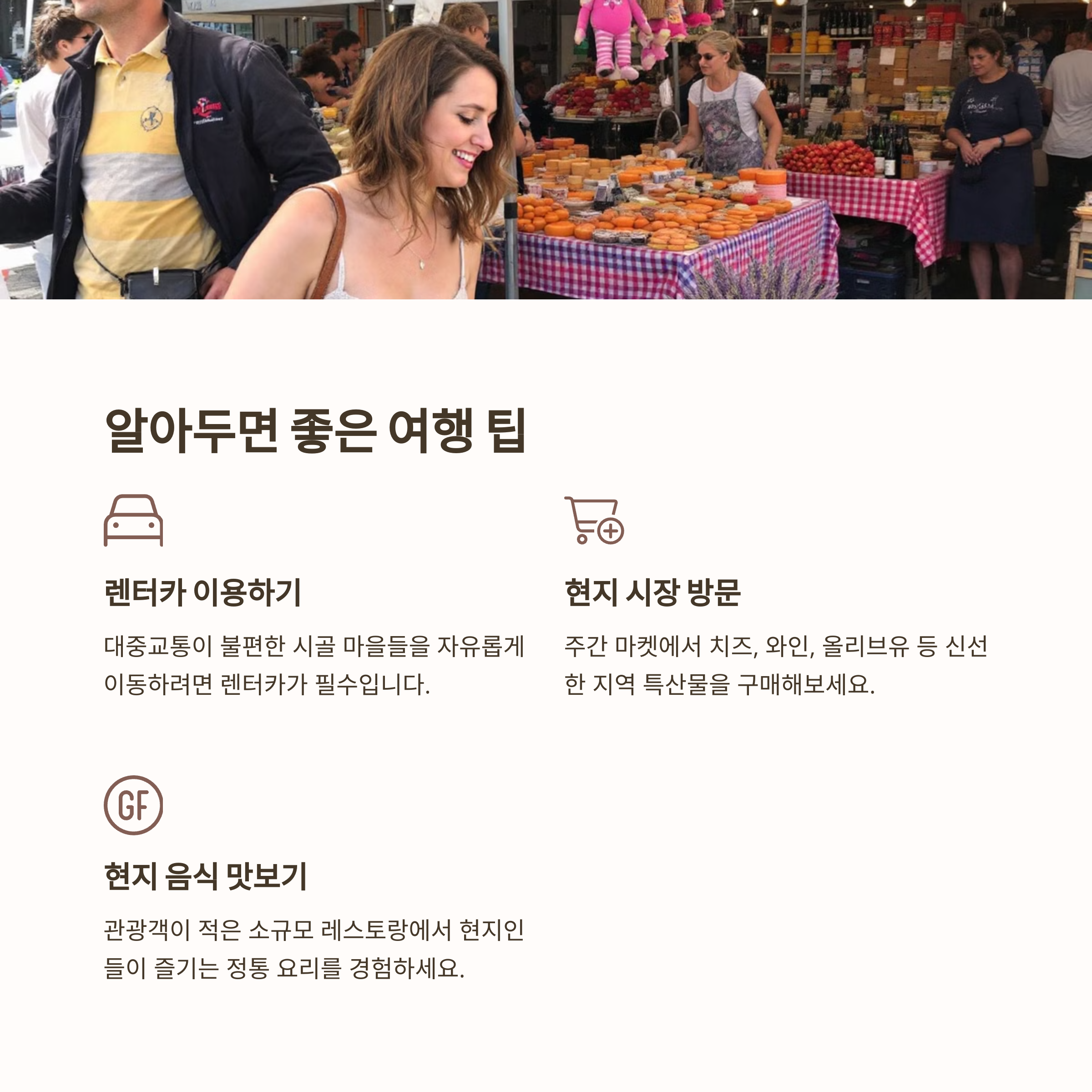 | 추천하는 여행자 | 관광지보다 조용한 여행을 선호하는 사람, 현지 문화를 깊이 경험하고 싶은 사람 |