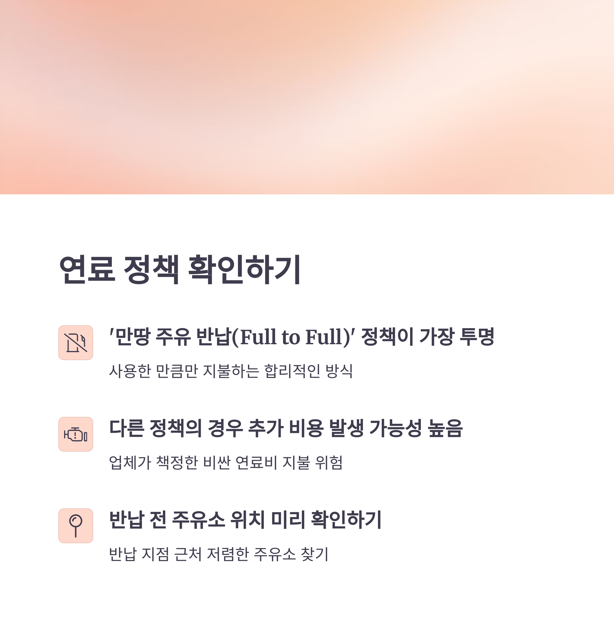 연료 정책, 추가 운전자 요금, 공항 수수료 등도 가격에 큰 영향을 줍니다. ‘Full to Full(만땅 주유)’ 정책이 가장 투명하며, 공항 픽업 시에는 추가 요금이 붙는지 꼭 확인해야 합니다. 또한, 할인 코드나 회원 전용 혜택을 활용하면 더 저렴하게 예약할 수 있습니다.