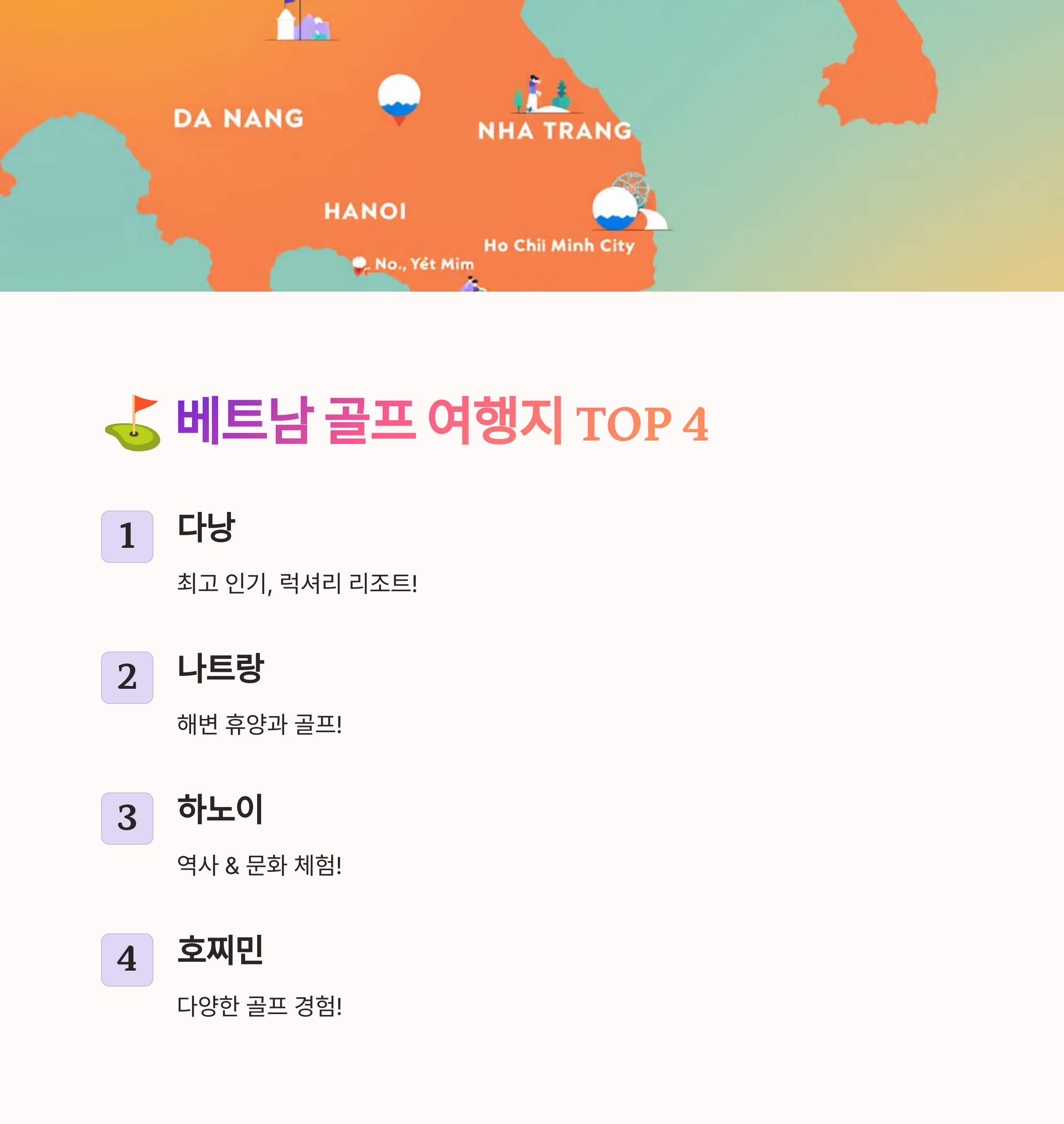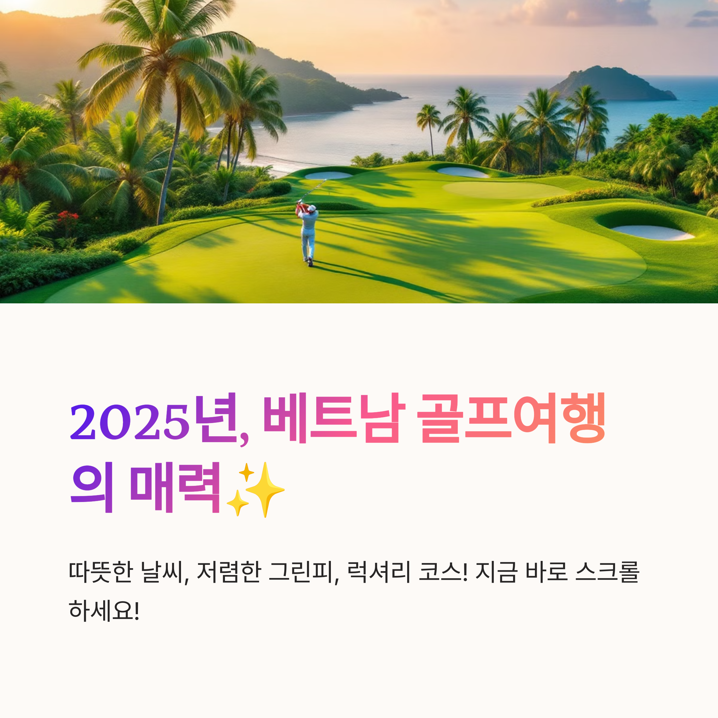 베트남 골프 여행은 가성비와 럭셔리를 동시에 만족시키는 최고의 선택입니다. 한국보다 저렴한 비용으로 프리미엄 골프 코스를 경험할 수 있으며, 다낭, 나트랑, 하노이, 호찌민 등 다양한 지역에서 해변 뷰, 정글 속 코스, 리조트 골프를 즐길 수 있습니다.