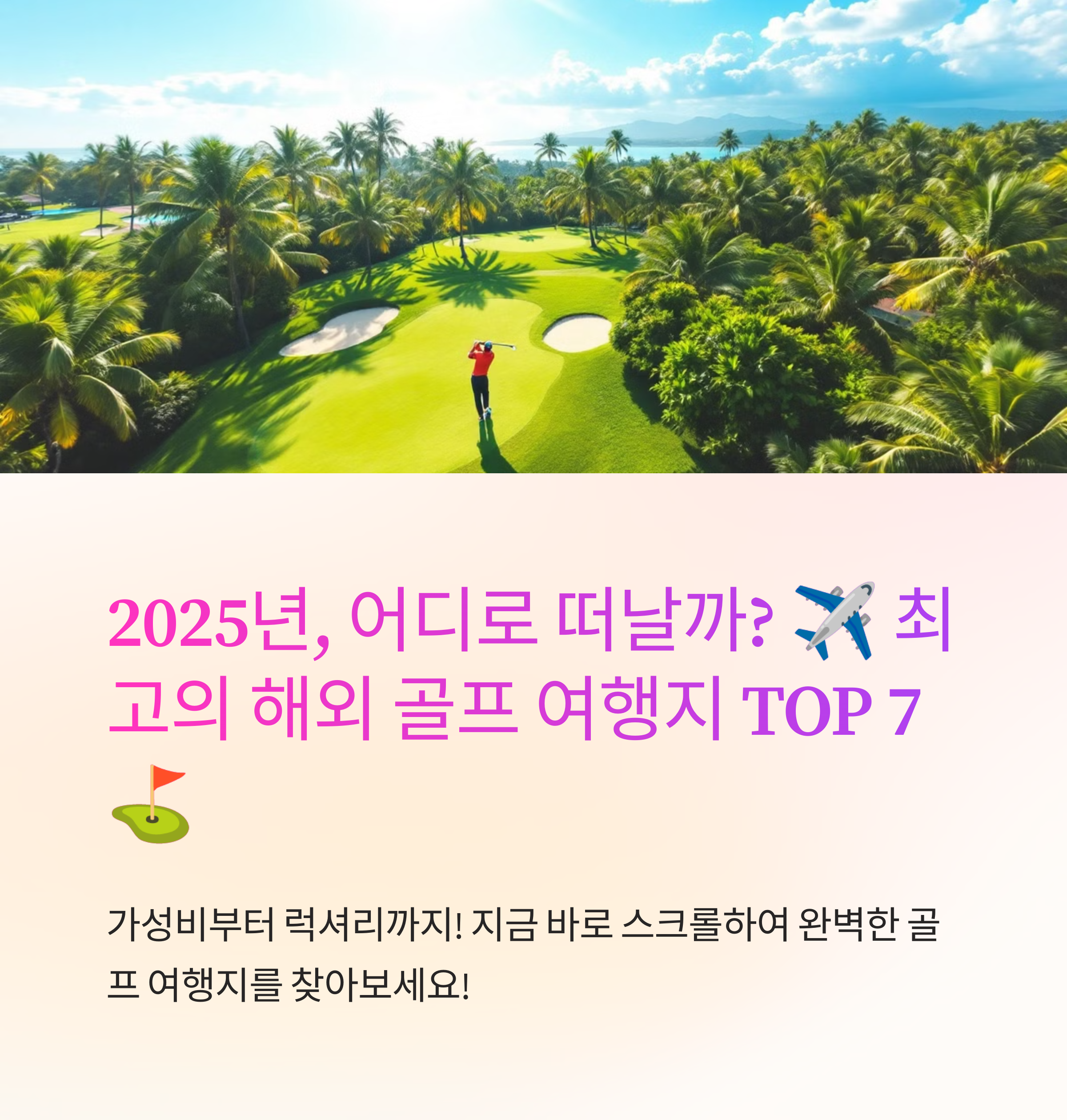 여러분은 2025년 해외 골프 여행으로 어떤 국가를 고려하고 계신가요? 가성비 좋은 베트남과 태국, 혹은 럭셔리한 미국과 유럽? 댓글로 여러분의 생각을 공유해주세요!