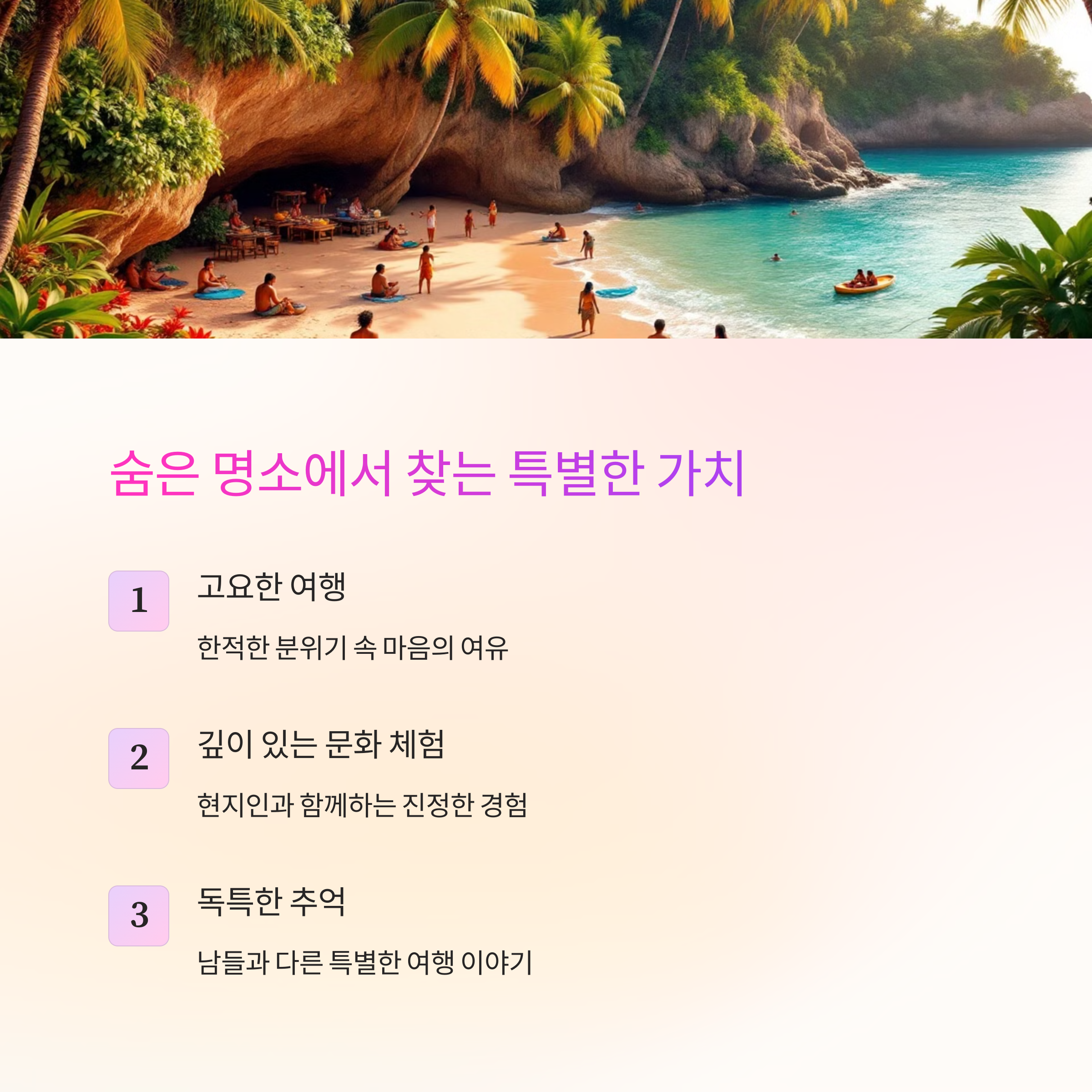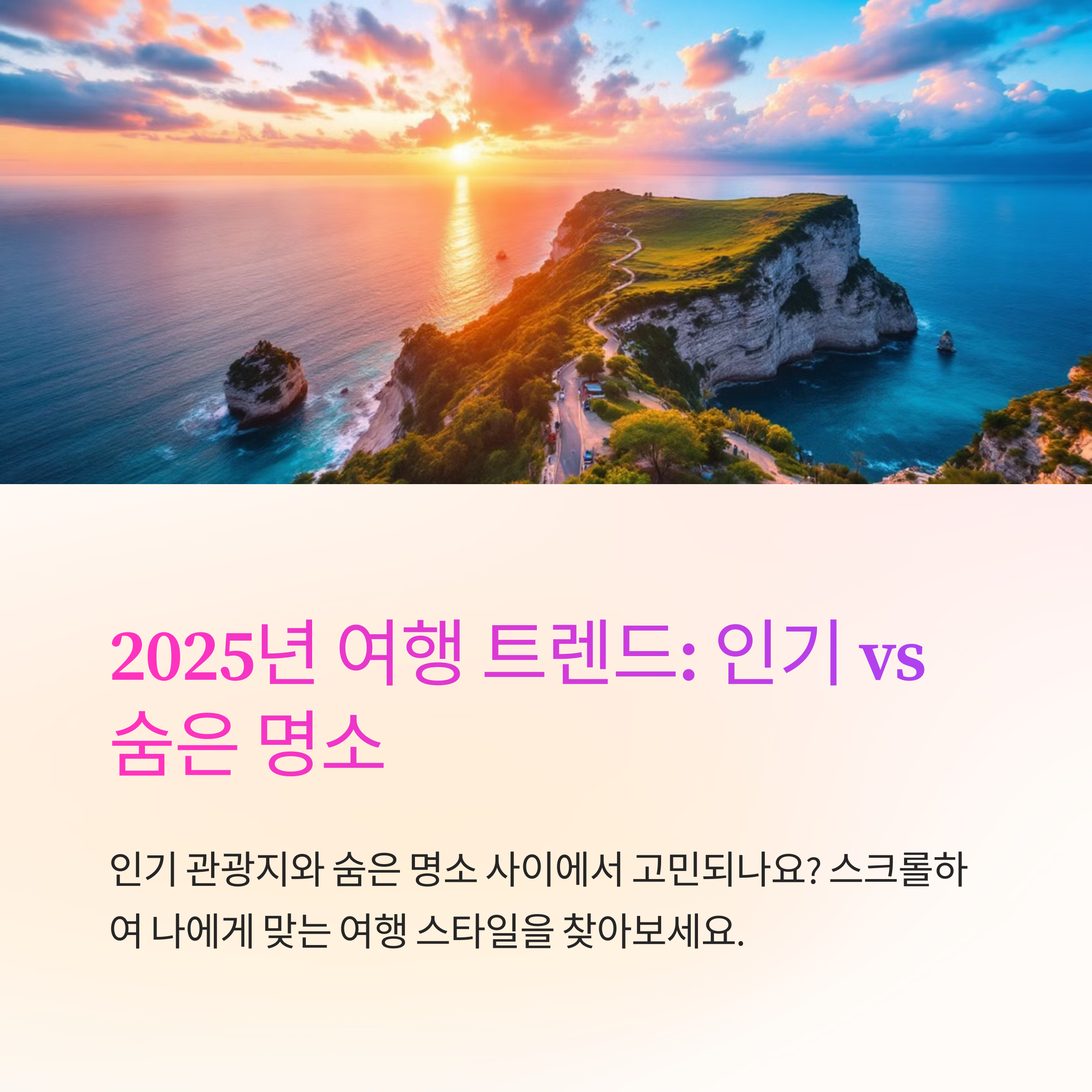 여러분은 인기 여행지를 선호하시나요, 아니면 숨은 명소에서 조용한 시간을 보내고 싶으신가요?