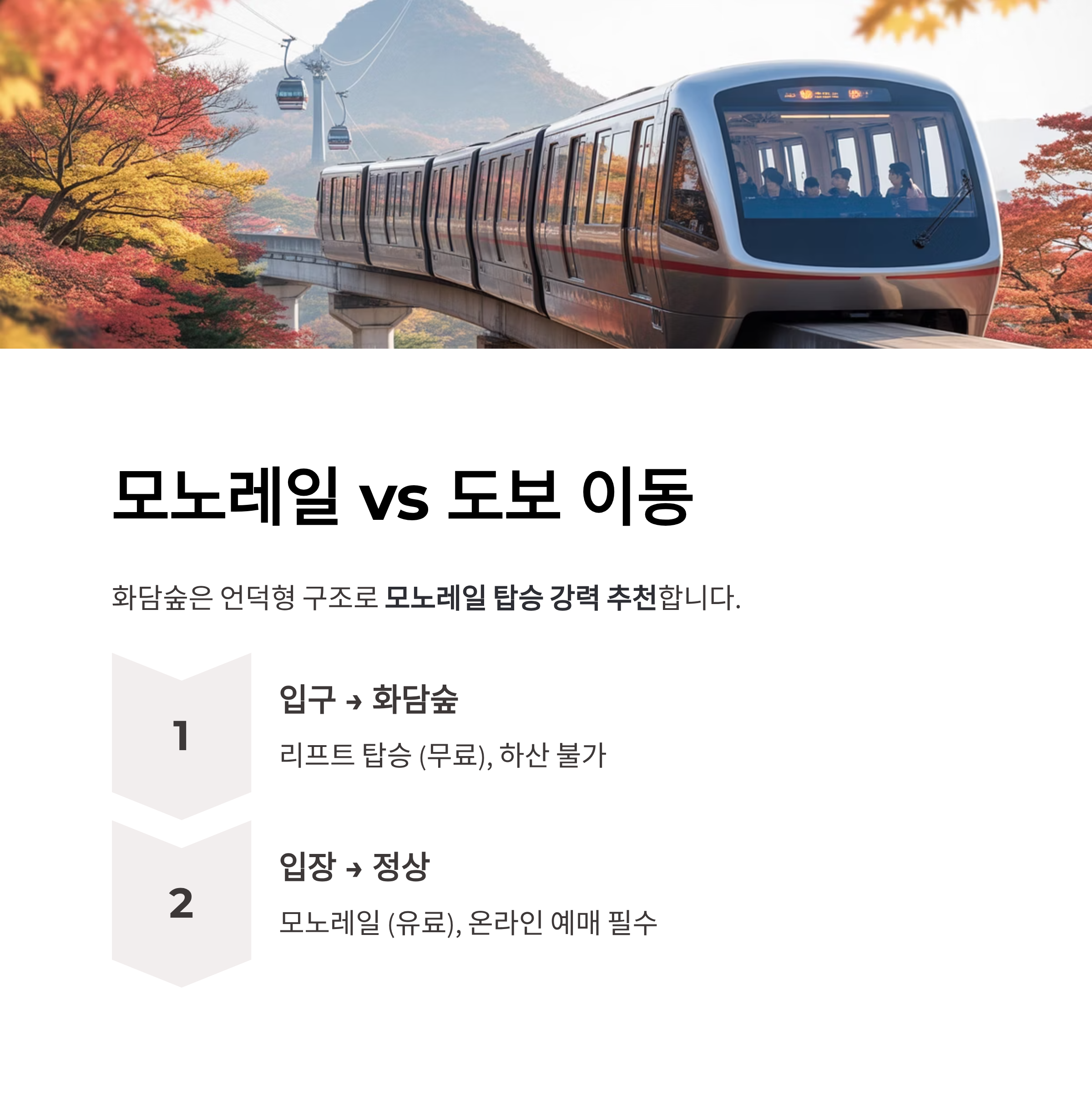 | 입장 → 정상 | 모노레일 탑승 (유료) | 온라인 예매 필수 |