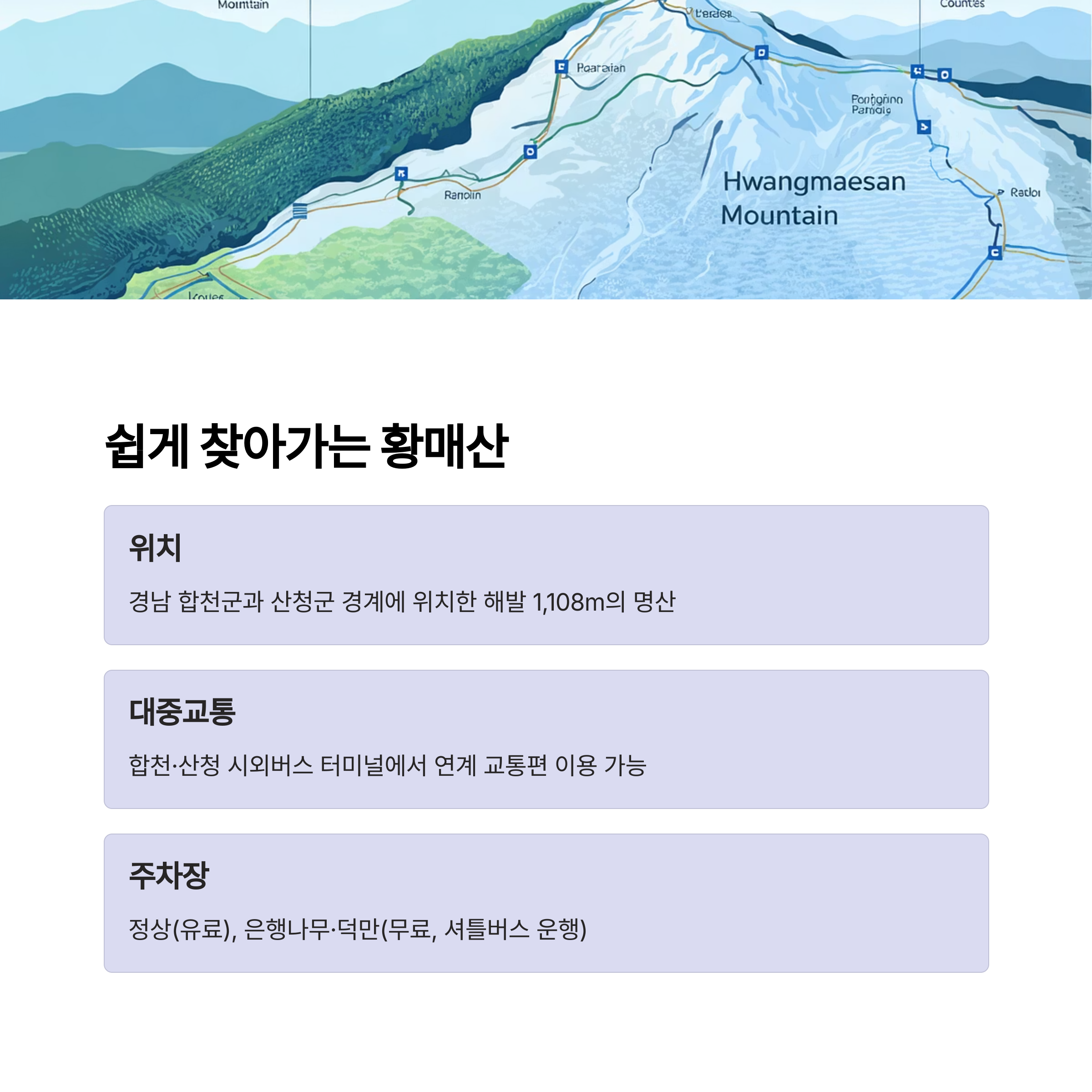 **황매산 정상(1108m)**까지 오르는 트레킹 코스를 추천드려요