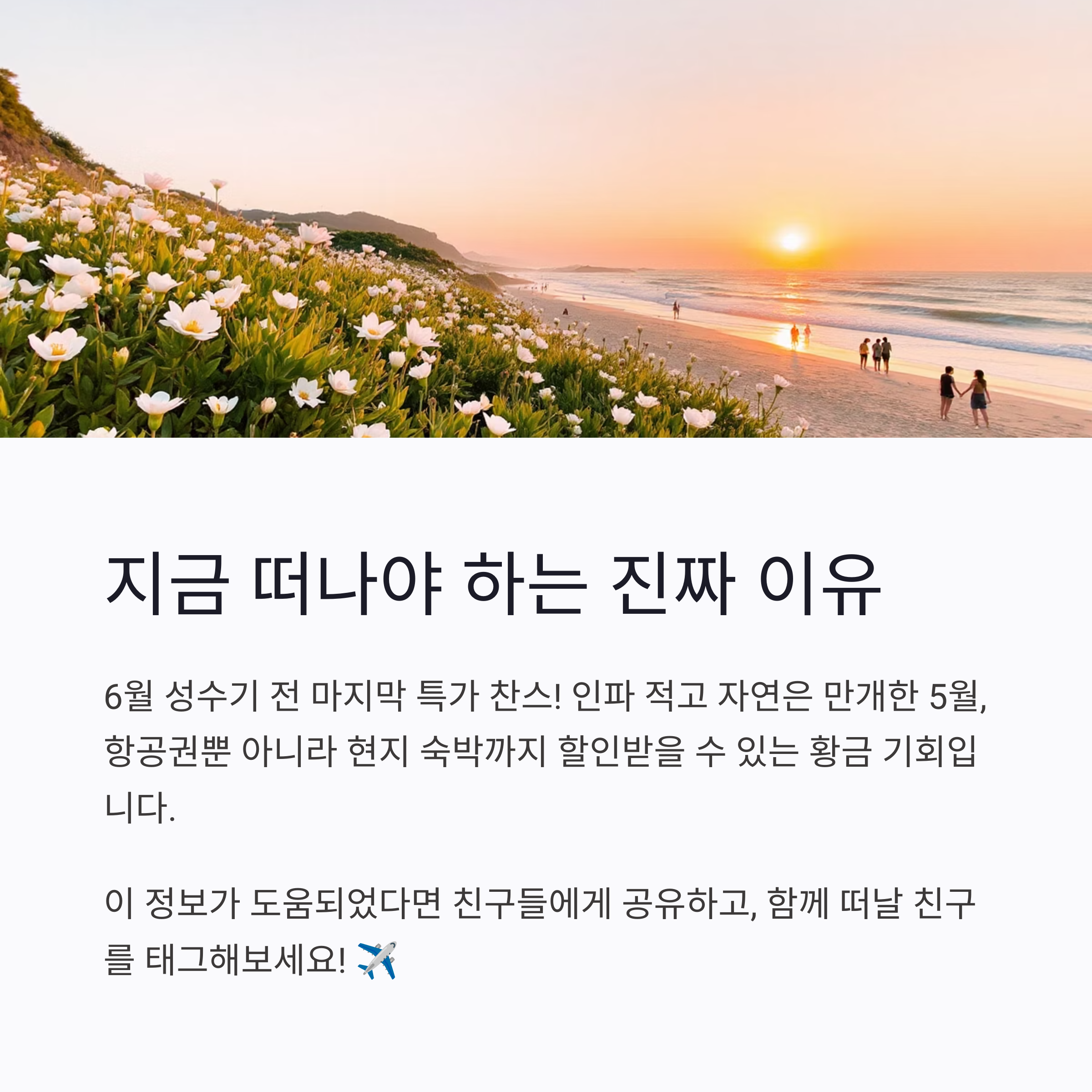 "지금 예약하면 황금연휴 직후에도 저렴하게 다녀올 수 있어요" ✈️